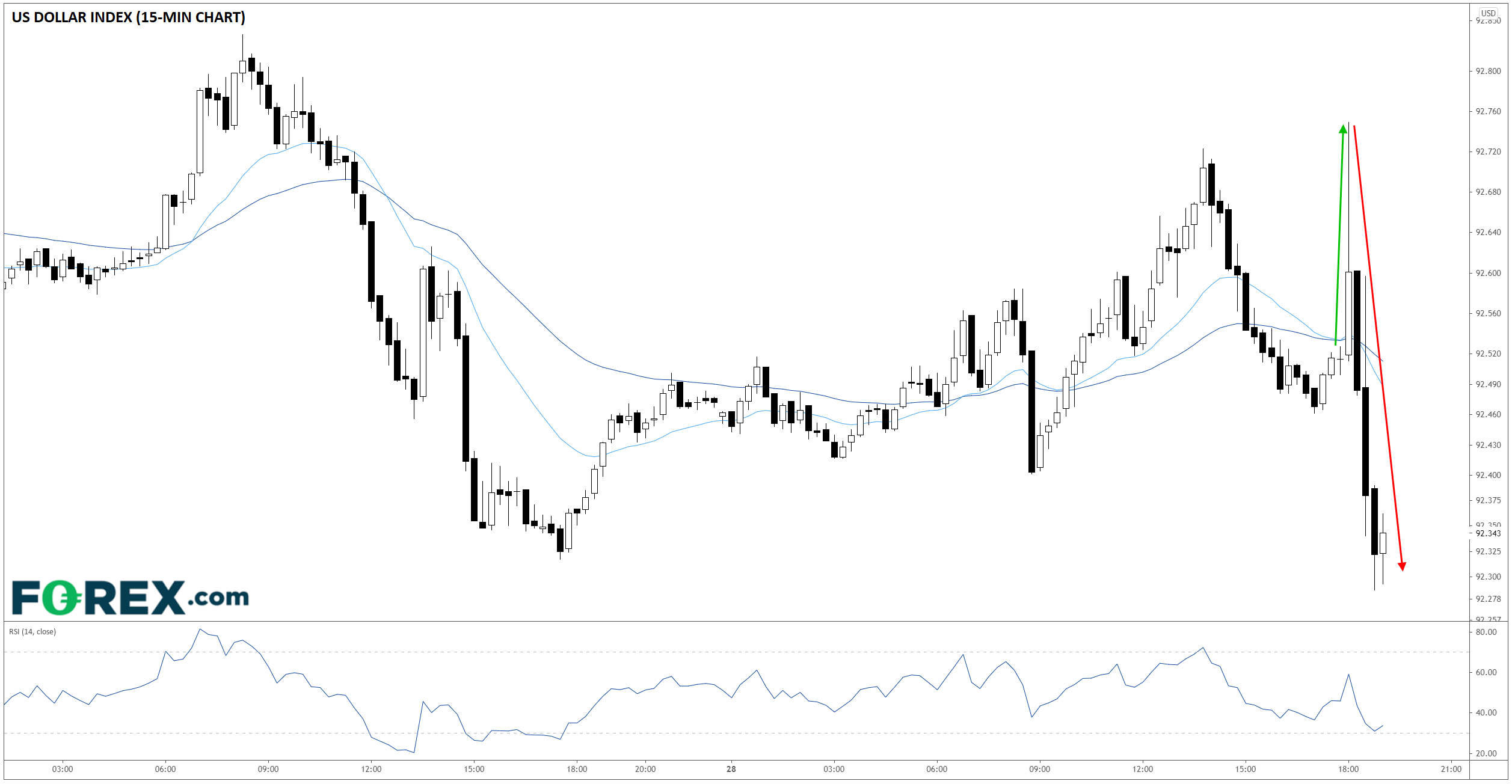 从声明发布后美元上涨而黄金下跌的市场即时反应来看,美联储立场较预期更加强硬,基准10年期美债殖利率上升了2个基点。但随着鲍威尔新闻发布会登场,上述走势悉数减弱。最引人注目的是美元在最初推高后小幅下挫,随着交易员押注下月不会宣布缩表声明,美元兑主要对手货币现交投下跌约20点。