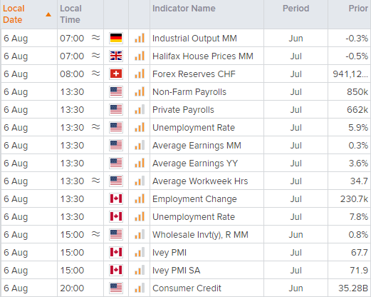 显然,今天焦点是英国夏令时13:30公布的美国非农报告。我们推测汇市在非农发布前的交投会相对平静。但由于加拿大就业数据也将于同一时间揭晓,因此需重点关注美元/加元和其他加元或美元货币对。需要两份趋势背离的报告结果才能引发美元/加元明确方向性走势。例如,若非农疲弱,加拿大就业强劲,美元/加元或推低。最不理想的情况是两份报告结果都落在预期附近,或是信号良莠不齐(就业和失业率都略微上行),此情境可能会引发震荡,货币对将无法展开果断的方向性走势。