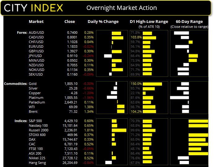 美联储官员Christopher Waller在隔夜的虚拟会议上重申强硬观点,声称其认为美联储“……将能够撤回宽松货币政策,并且速度可能快于其他人所想”。美元指数触及8天高点但时段收平,呈现小十字星形态(表明市场没有方向)。
